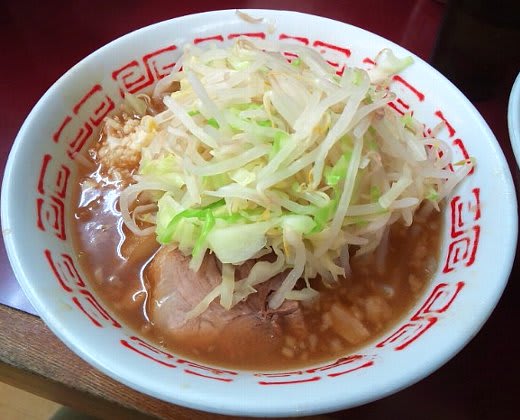 やさいは細く刻んだキャベツが多め、スープは乳化タイプ。